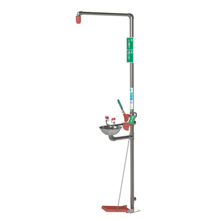 - Levert de aanbevolen 76 liter per minuut drinkwater per minuut uit de douche en 12 liter per minuut uit de oog-/gezichtsdouche