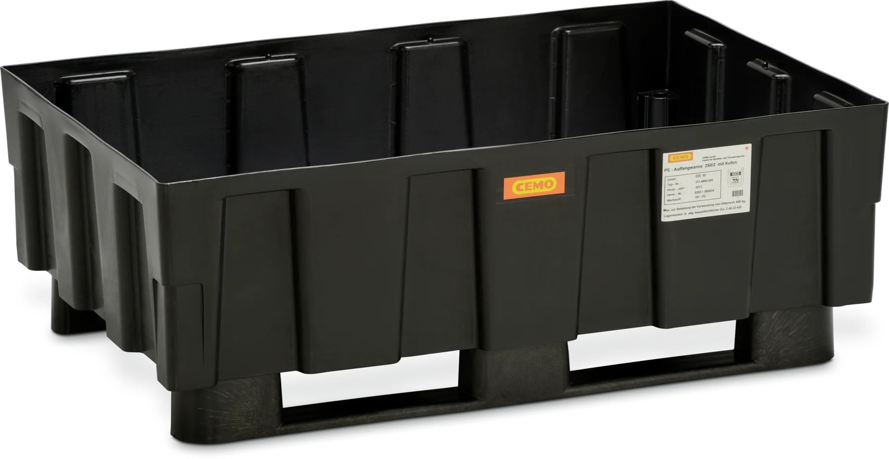De OCS-8430 met sleden van Cemo is een robuuste, kunststof opvangbak met een inhoud van 250 liter, zonder rooster, ideaal voor het veilig opvangen van lekkages bij vaten of kleine emballages. Het product combineert duurzame materialen (HDPE) met praktische functionaliteit, een degelijk draagvermogen tot 600 kg, en veelzijdige toepassingsmogelijkheden binnen industriële opslagomgevingen. Dankzij de sterke constructie en hoge chemische weerstand biedt deze lekbak een betrouwbare oplossing voor het opvangen van chemische en water verontreinigende vloeistoffen. Door de sleden makkelijk te verplaatsen met een pompwagen of heftruck.