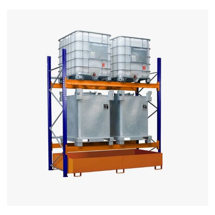 Opslagstelling geschikt voor het veilig en efficient opslaan van vloeistofverpakkingen / IBC's