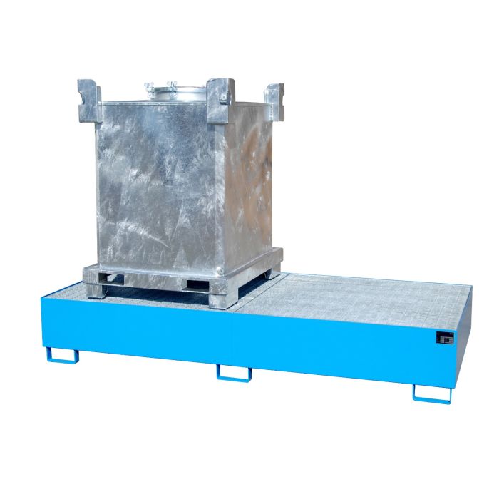 Staal gelakte IBC lekbak voor 2 stuks IBC / KTC van 1.000 ltr. Voor een veilige opslag van verpakte gevaarlijke stoffen overeenkomstig PGS 15 (voorheen CPR 15-1), VLAREM, ARAB, CODEX