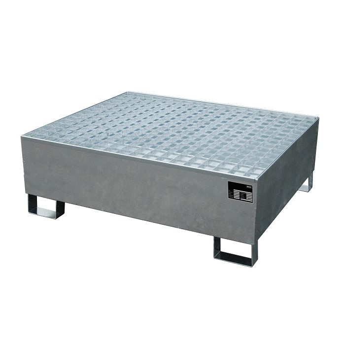 Staal verzinkte lekbak met heftruckbeugels voor 4 200 ltr. vaten. Voor een veilige opslag van verpakte gevaarlijke stoffen overeenkomstig PGS 15, VLAREM, ARAB, CODEX