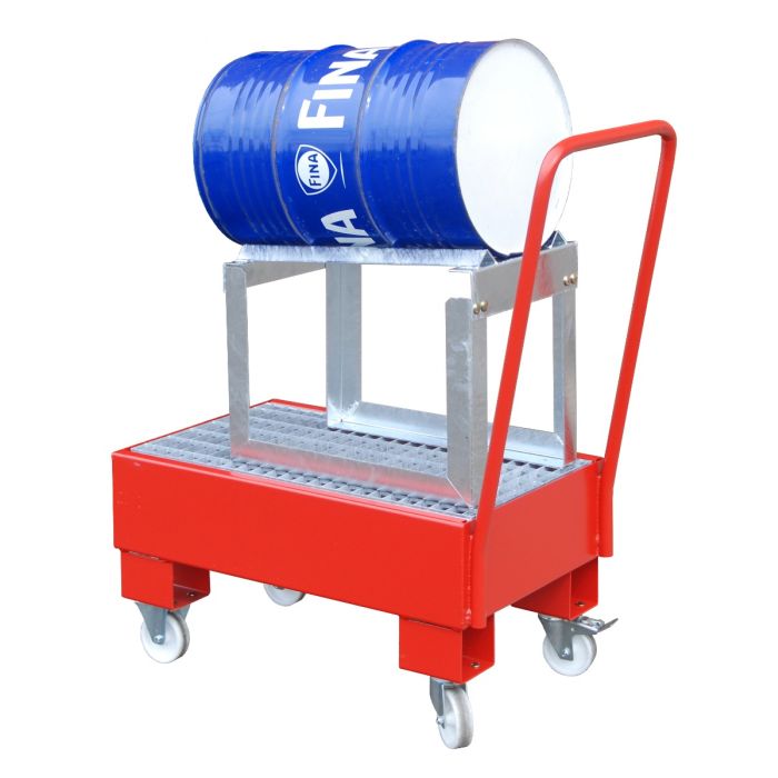 Verrijdbare lekbakken van staal met duwbeugel, met verzinkt rooster en vatenrek. Met deze verrijdbare lekbakken bent u te allen tijde veilig mobiel aan het werk, in en rondom uw bedrijf. Deze verrijdbare stalen lekbakken zijn handig manouvreerbaar en van zeer degelijke kwaliteit