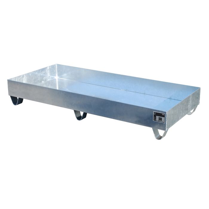 Stalen verzinkte lekbak, zonder rooster. Voor een veilige opslag van verpakte gevaarlijke stoffen overeenkomstig PGS 15 & VLAREM.