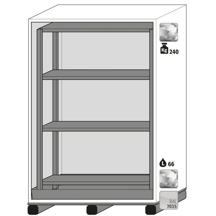 Vatenkast voor opslag van gevaarlijke (lichtontvlambare) stoffen op de werkplek, behorende tot de ADR klassen: 2, 3, 4.1, 4.2, 4.3, 5.1, 5.2, 6.1 en 8, volgens actuele regel- en wetgeving (PGS 15, ARAB, CODEX, VLAREM).